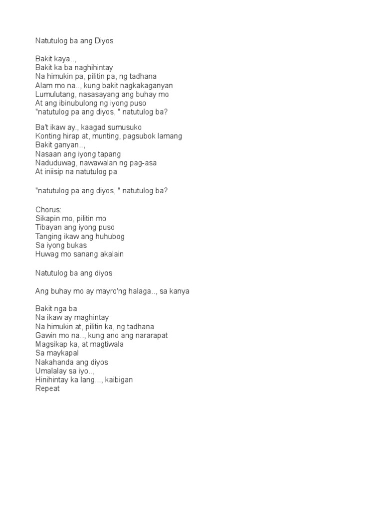 Natutulog Ba ang Diyos. Chords for videoke - opm natutulog ba ang diyos. Last updated on 02032014.